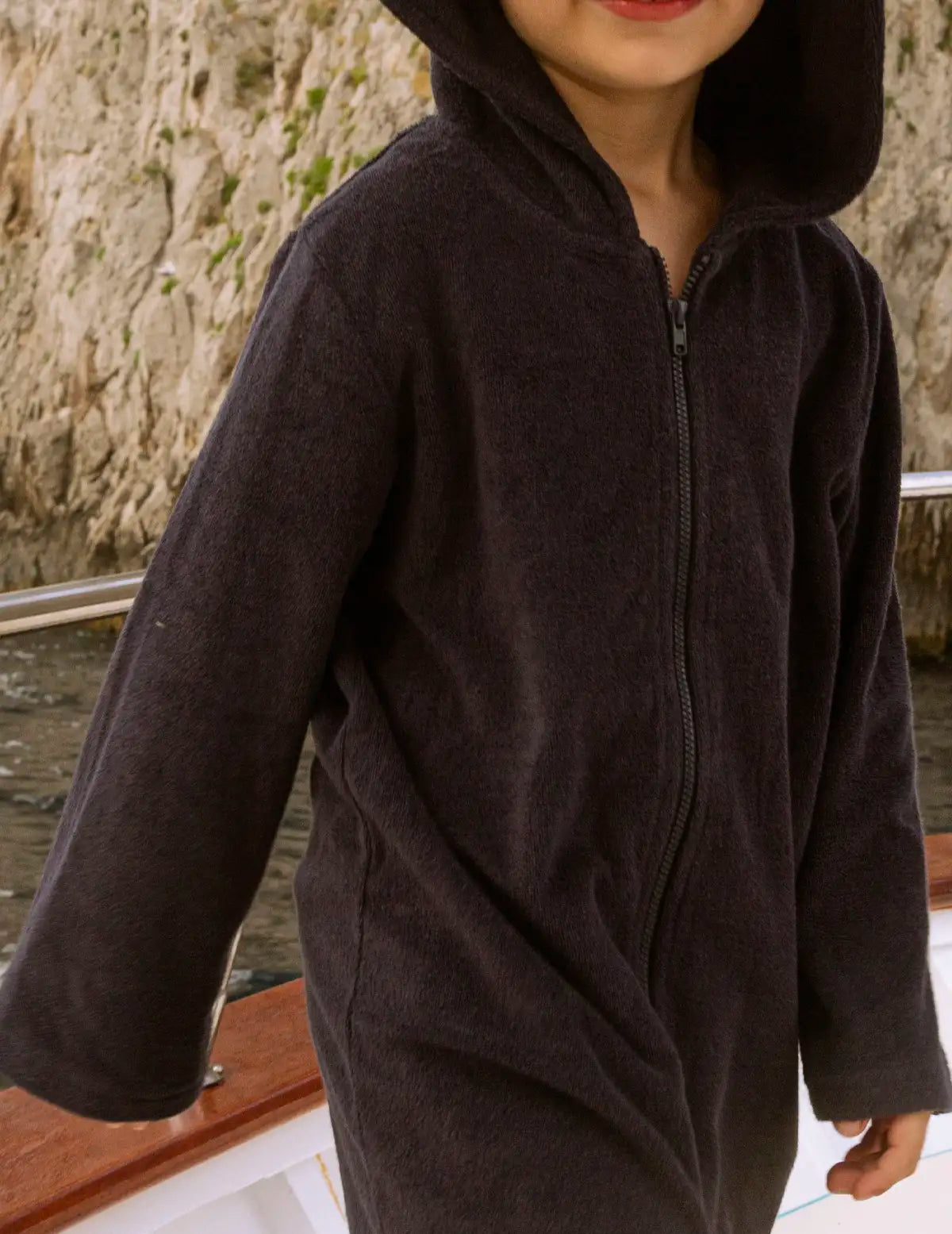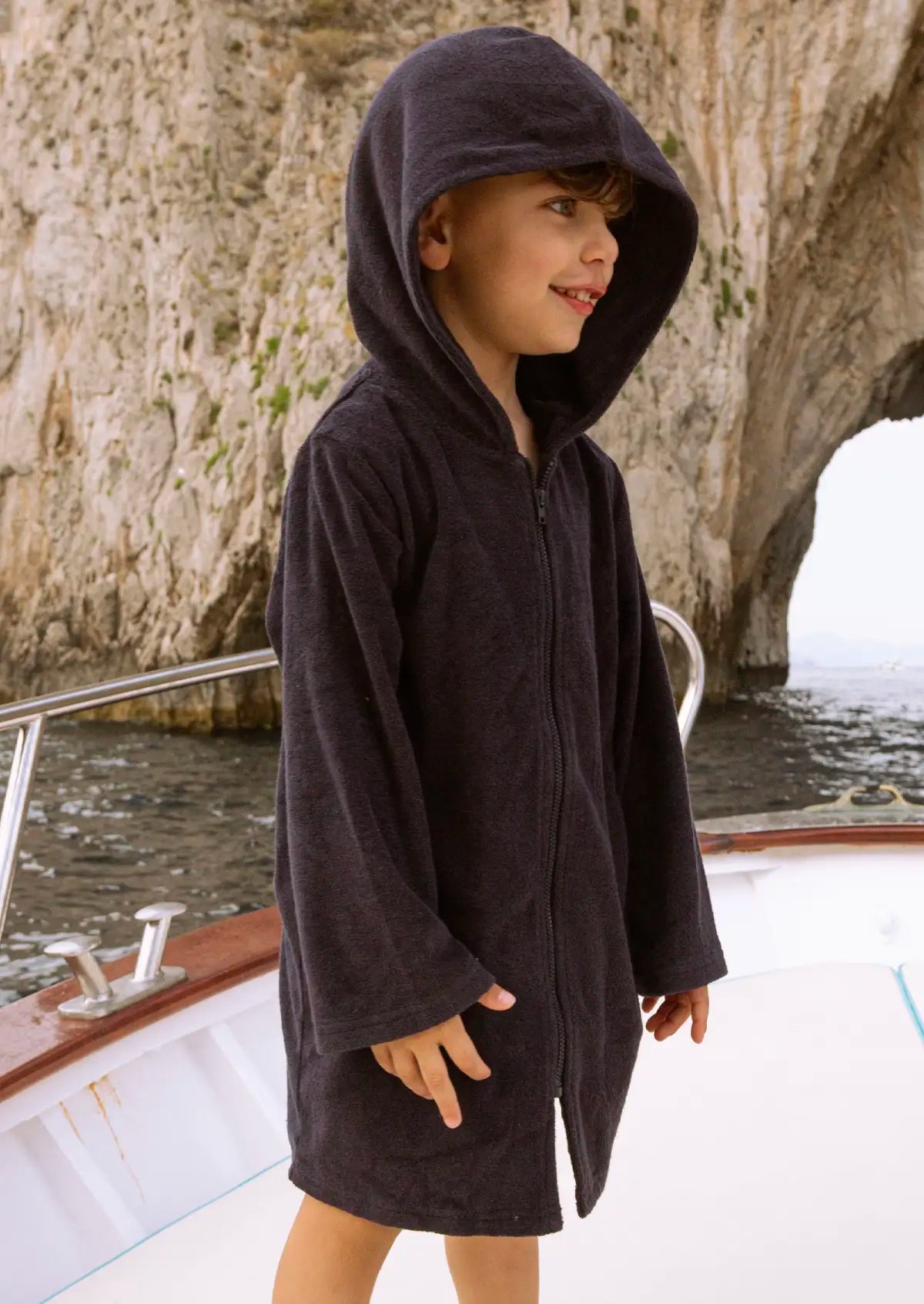 Elevate your little one's beach or pool experience with our Navy Hooded Swim Zip Robe in Terry Towelling. Perfectly designed for young adventurers, this robe combines practicality with playful style. Made from soft Terry towelling fabric, it wraps your child in gentle warmth and comfort after a swim.