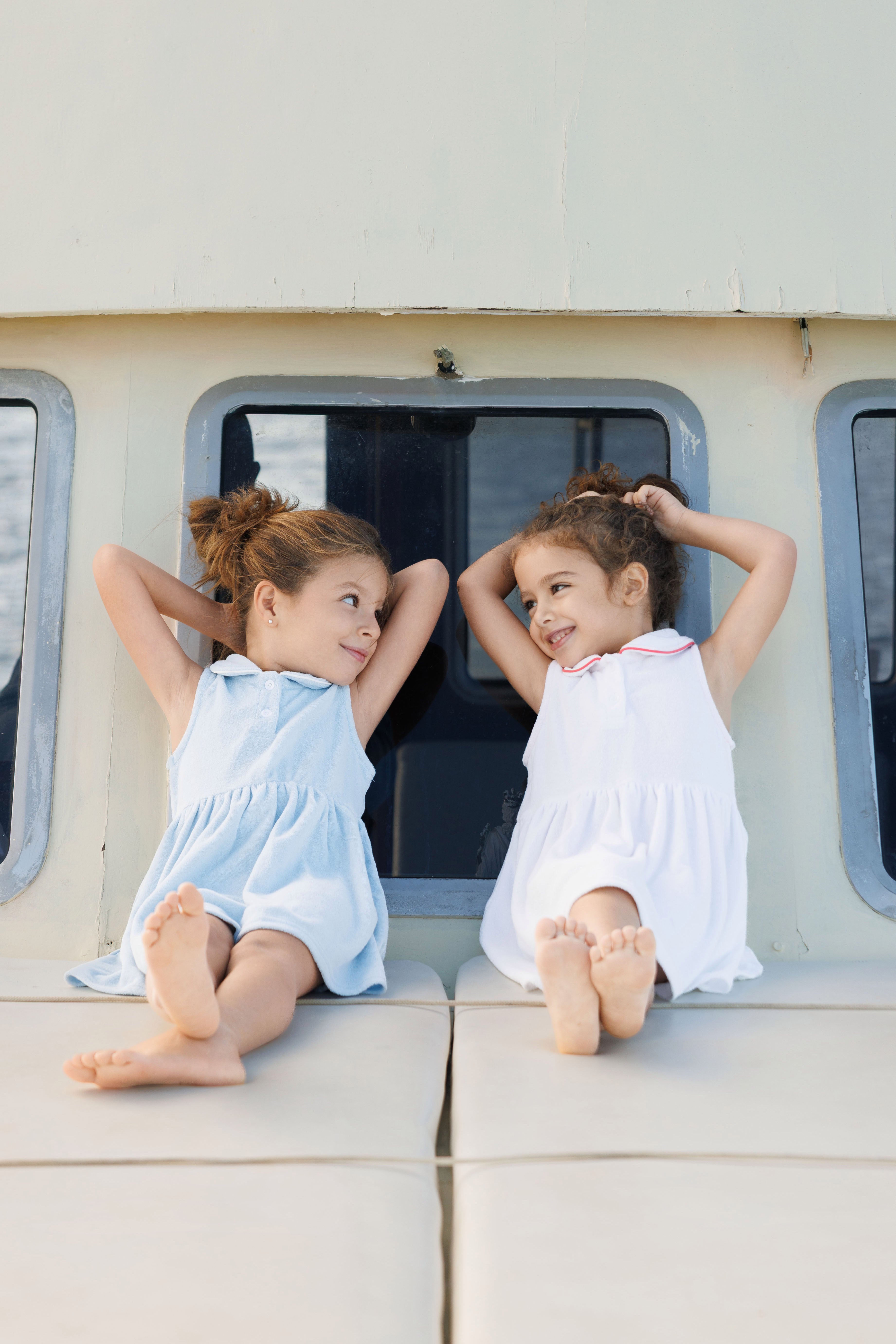 This tennis dress is cute. It has a preppy polo collar, a mid-thigh-length hem, and an easy, relaxed fit for your little one. To top it off it has a pink piping for extra detail.