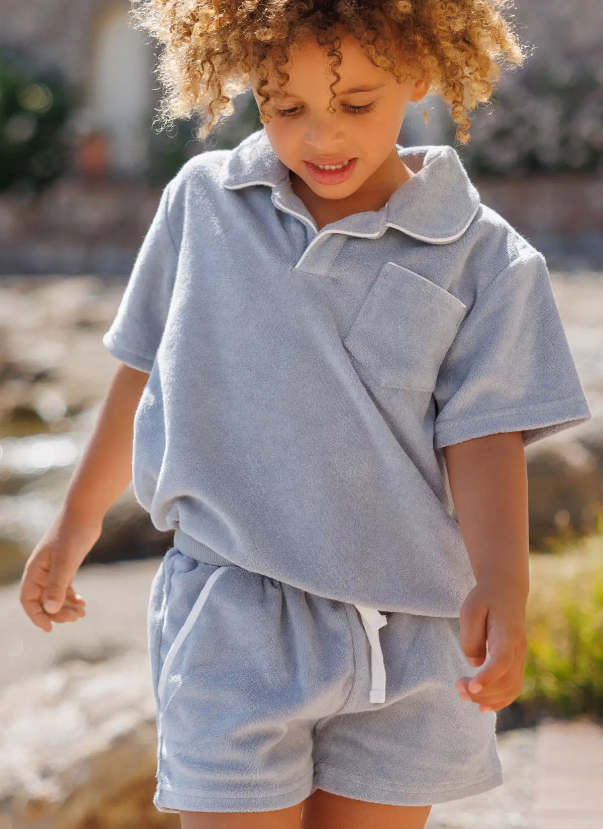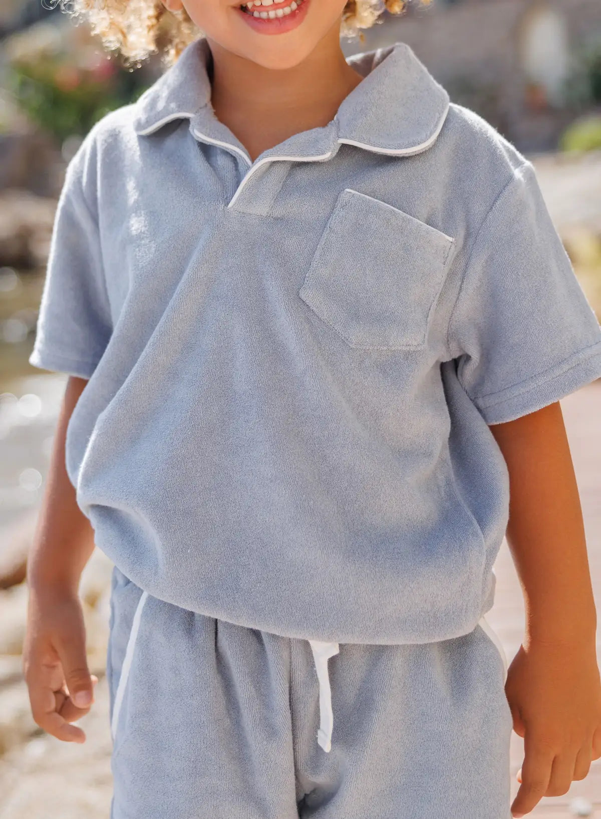 A summer wardrobe addition that coordinates perfectly, this outfit features a classic French Terry Polo with a relaxed short sleeve design, an open collar, and a ribbed hem with crisp white piping, paired with ultimate terry towelling summer shorts. Designed in French Terry with a relaxed fit, these shorts are a staple for warm weather, ensuring your child looks stylish and feels comfortable all day long.
